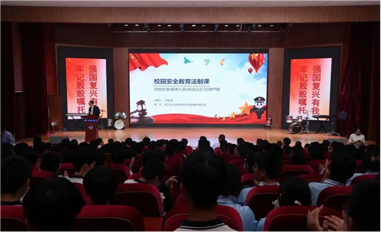 法治教育是青少年成长道路上不可或缺的重要基石,对护航青少年健康成长、构建平安和谐校园意义深远。逃生演练结束后,乔振海警官为全校师生带来了一场内容详实、案例生动的法治教育讲座。讲座围绕“反诈教育”“禁毒教育”和“反霸凌教育”三大主题展开,结合近期发生的真实案例,深入浅出地讲解了相关法律知识和自我保护技能。