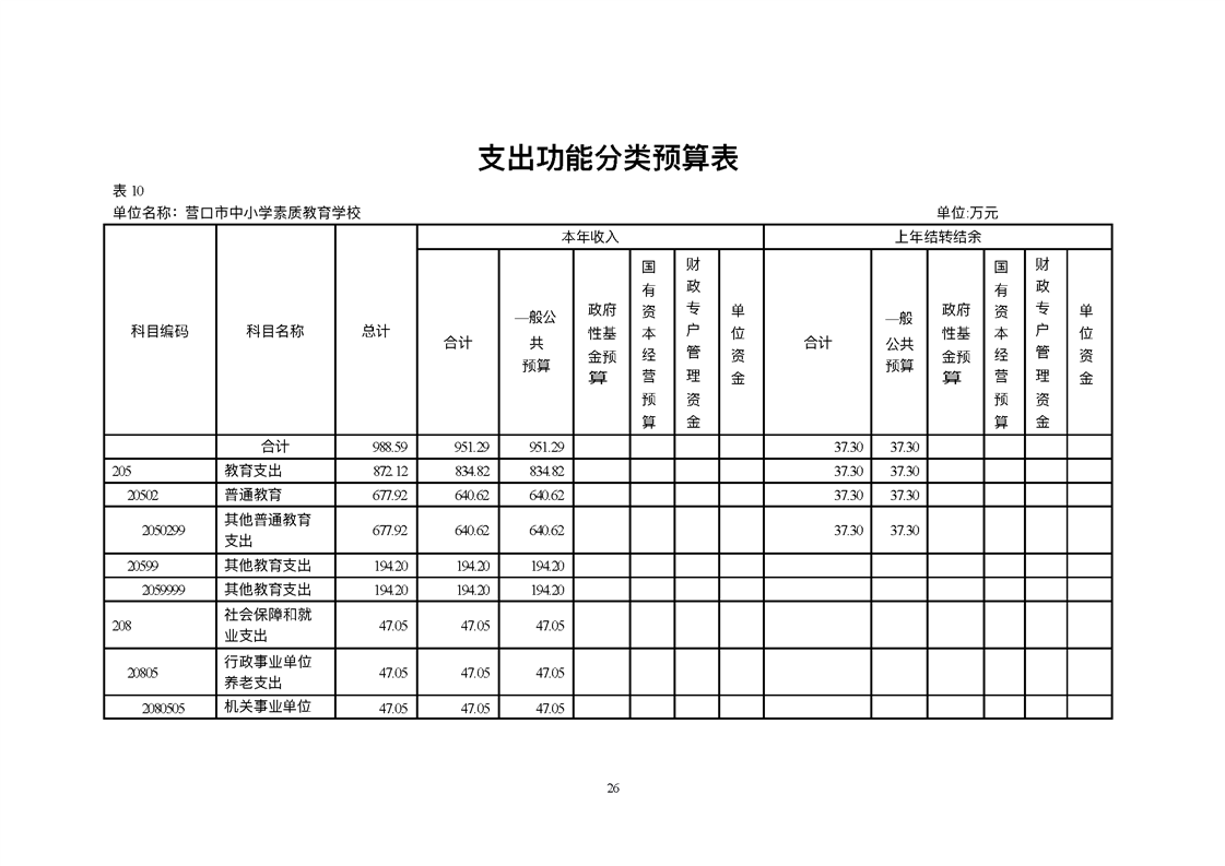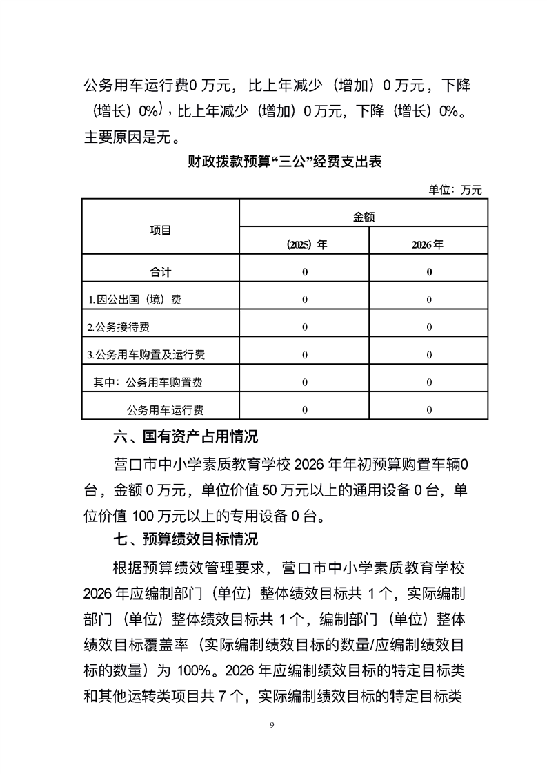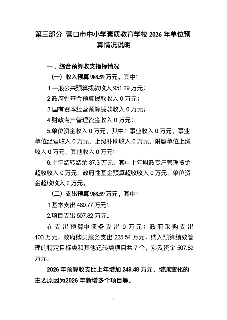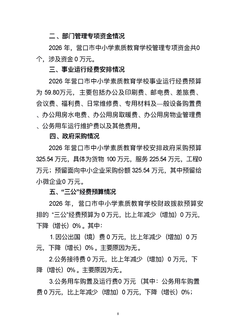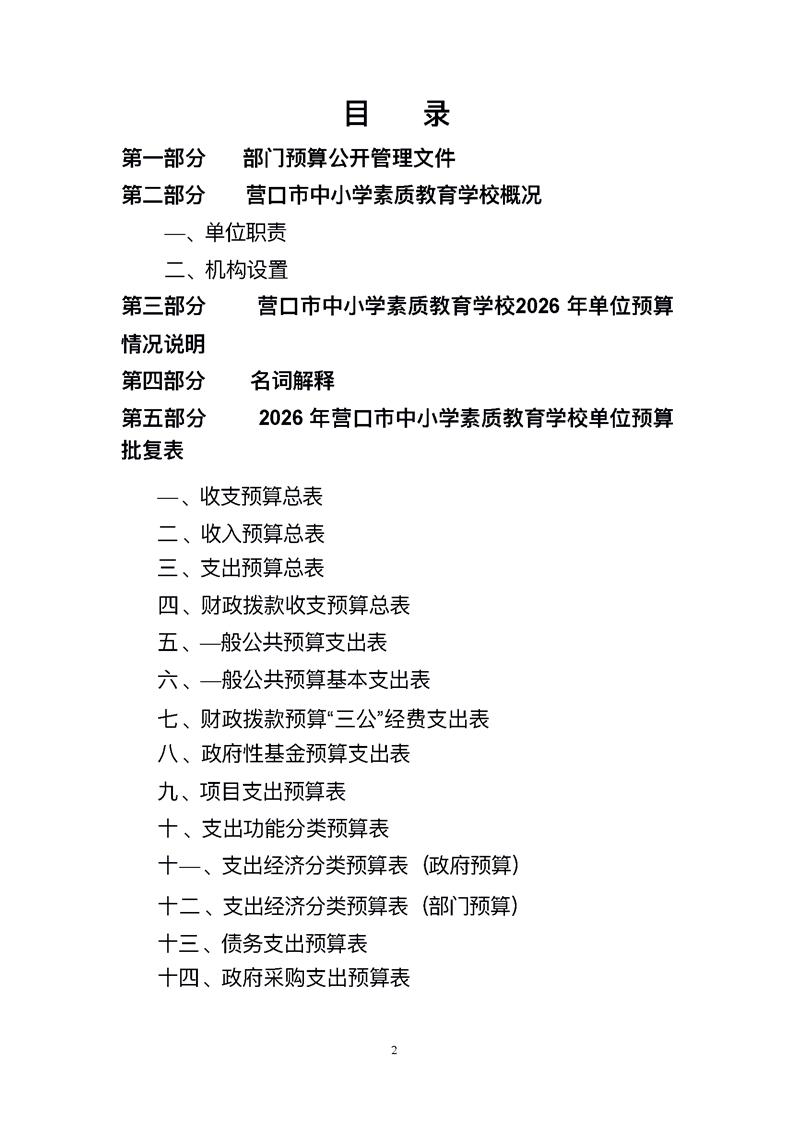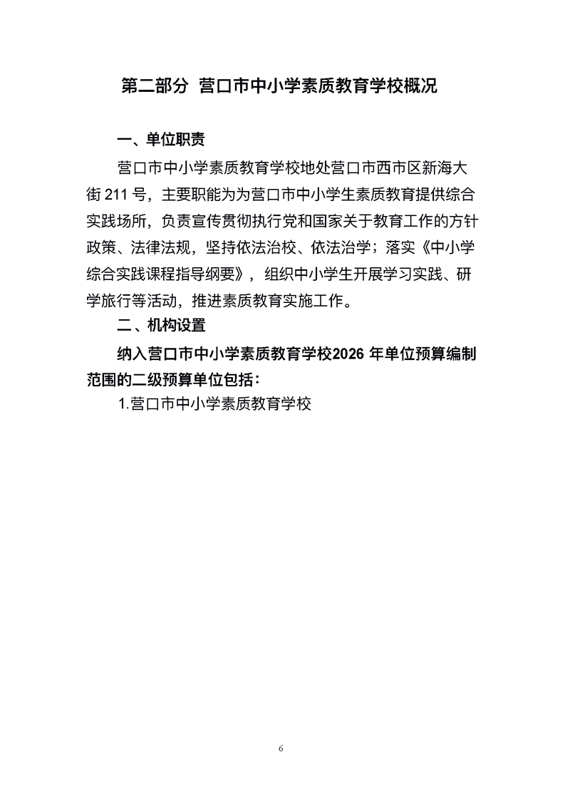 营口市中小学素质教育学校2026年度单位预算