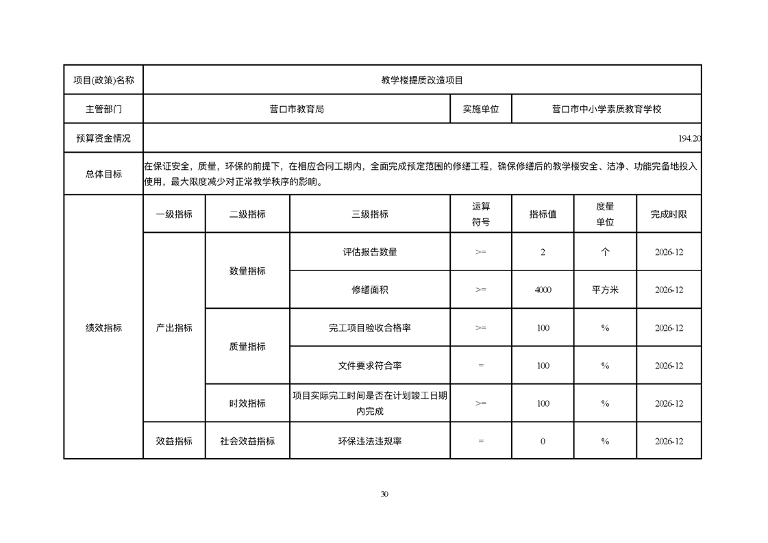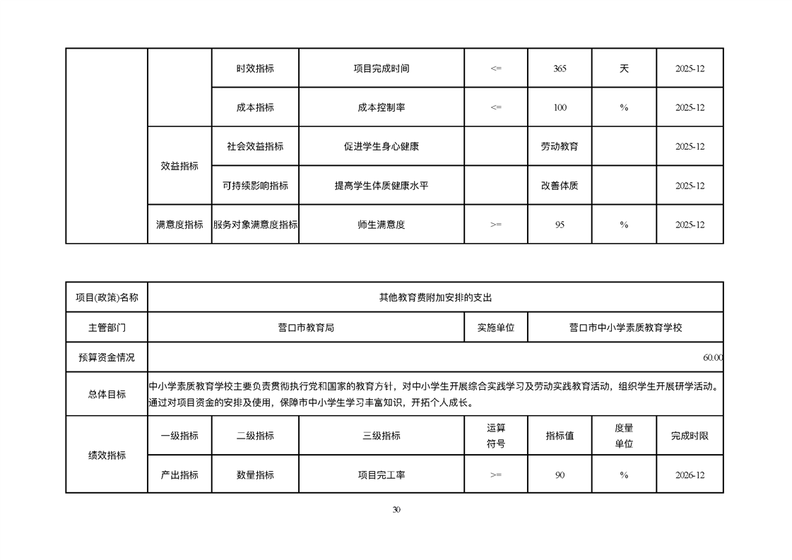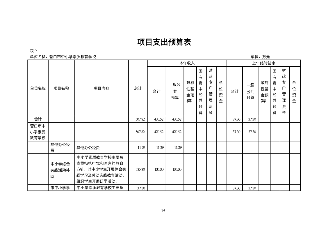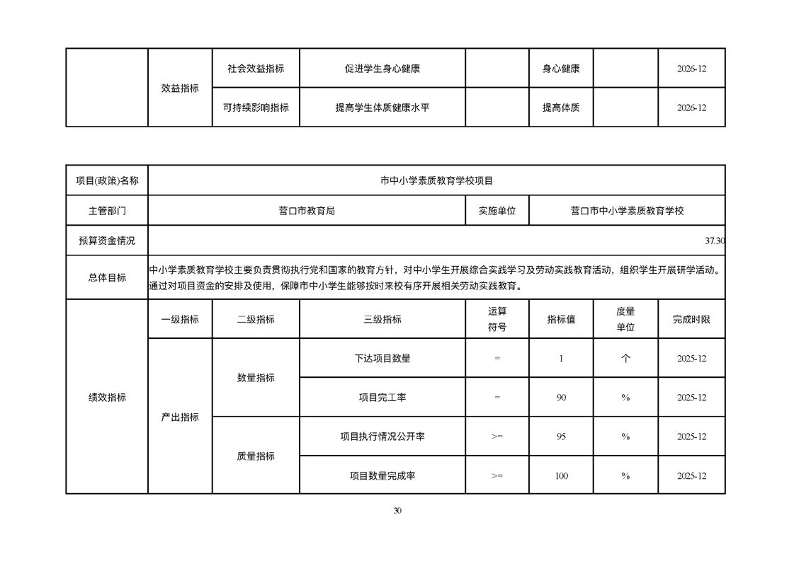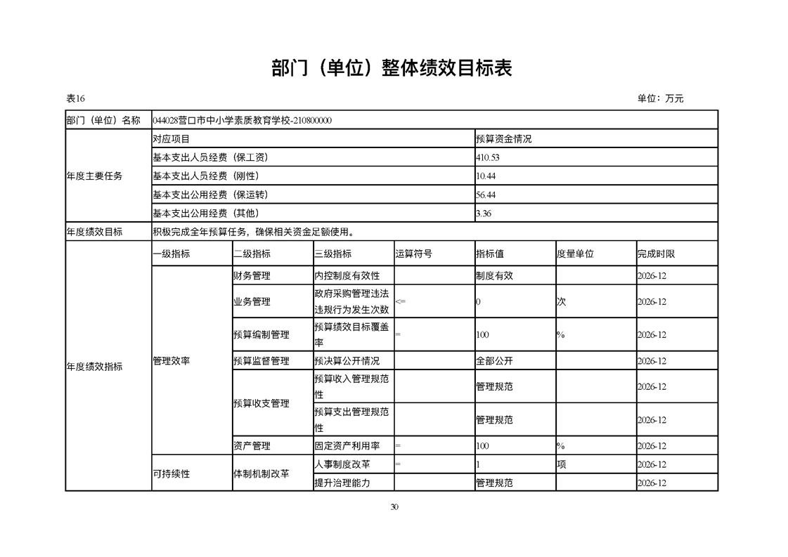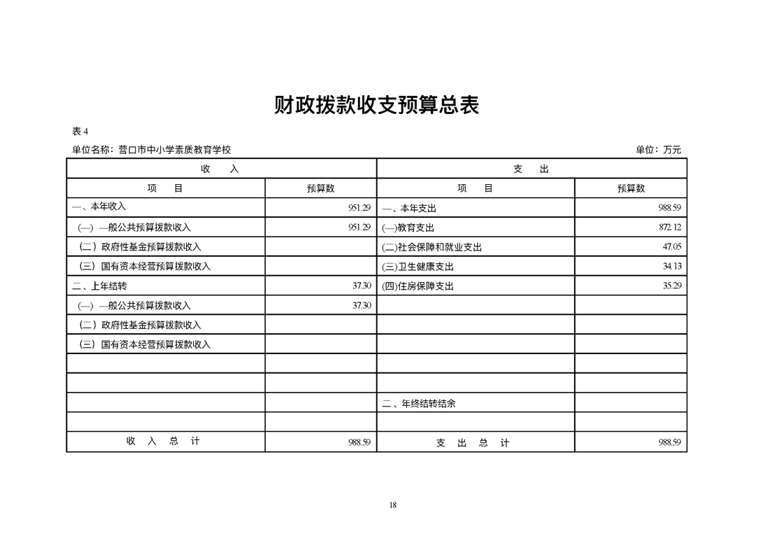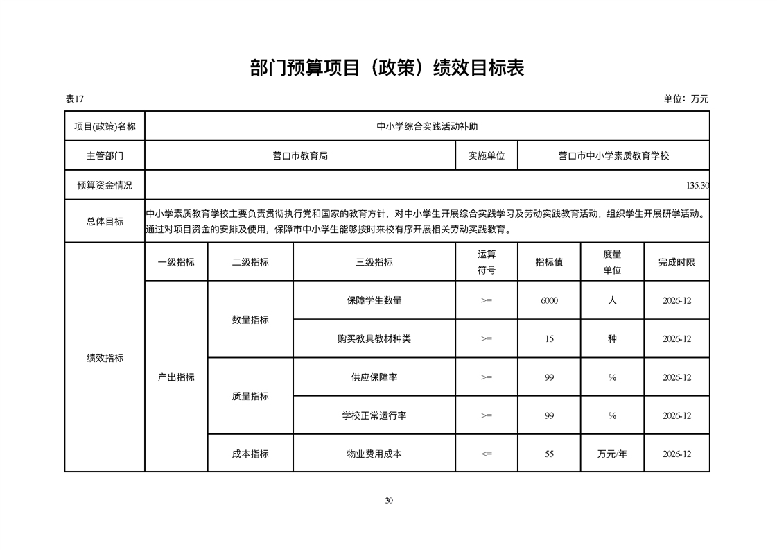 营口市中小学素质教育学校2026年度单位预算