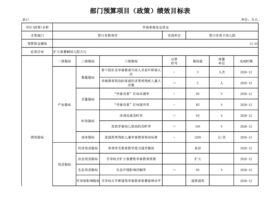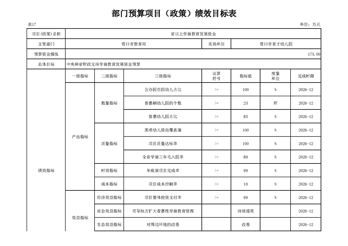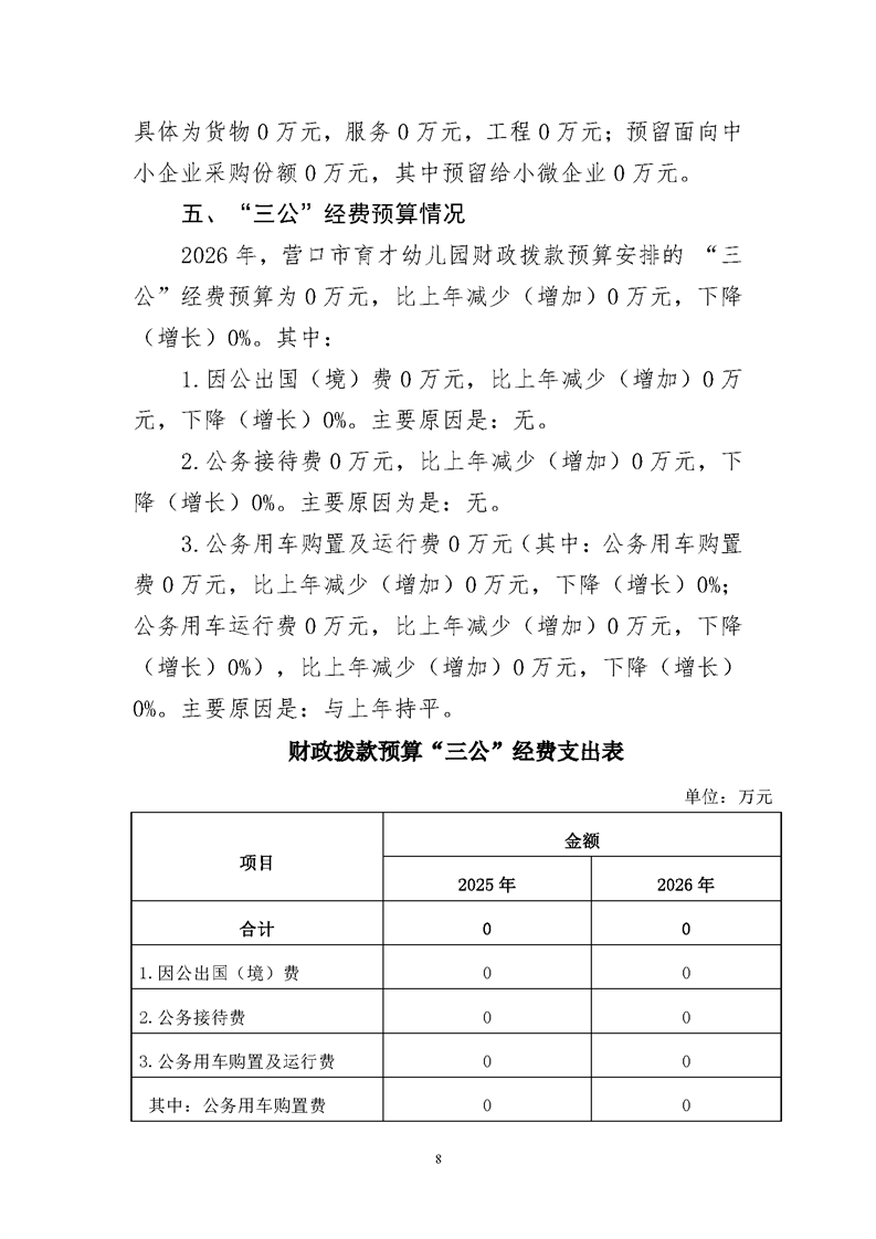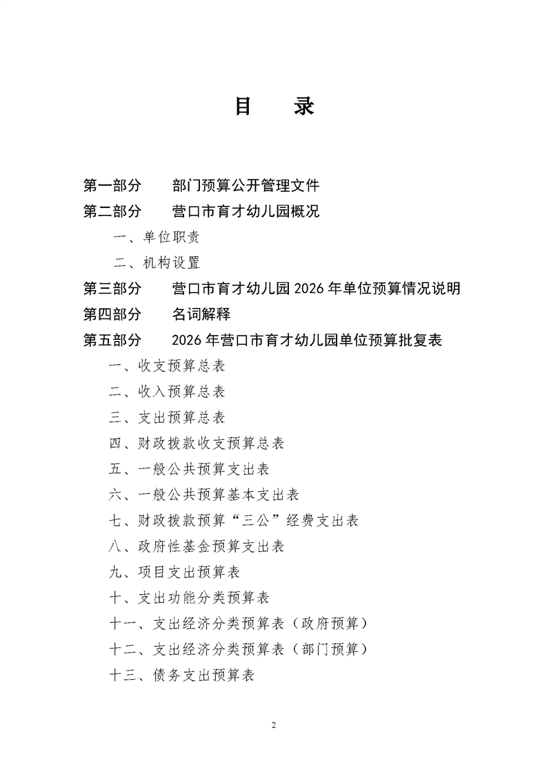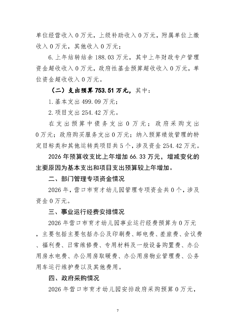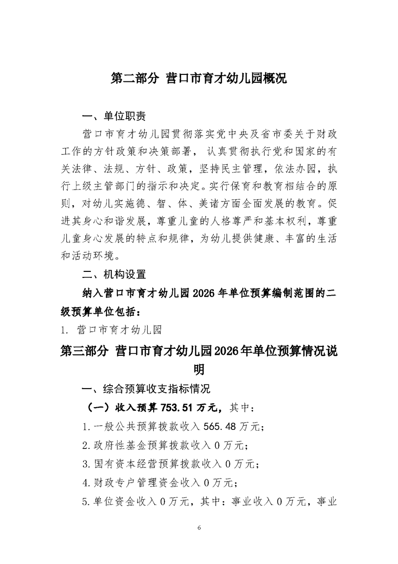 营口市育才幼儿园2026年度单位预算