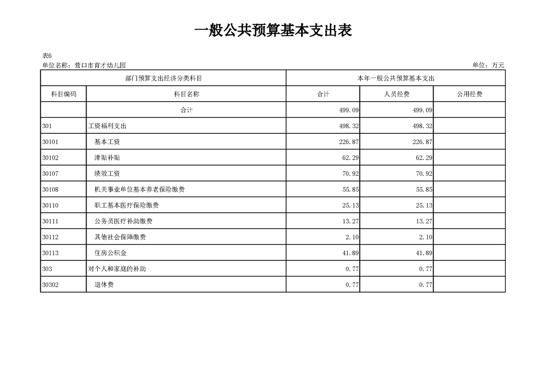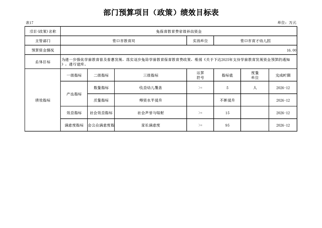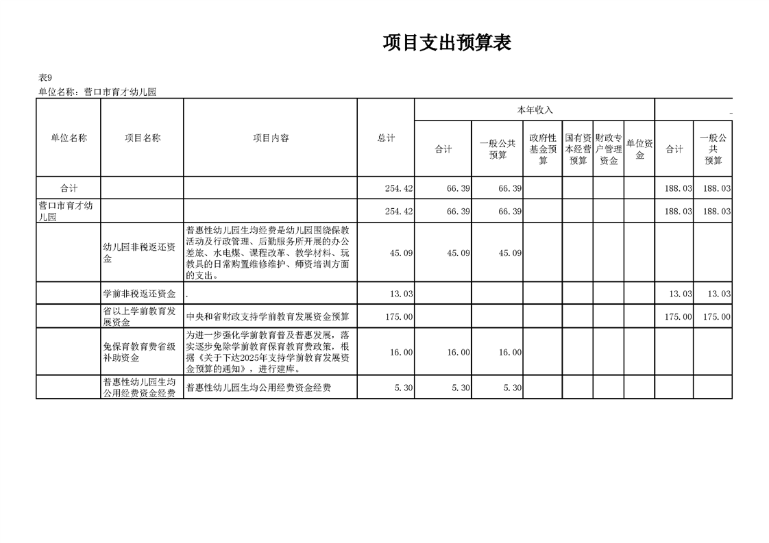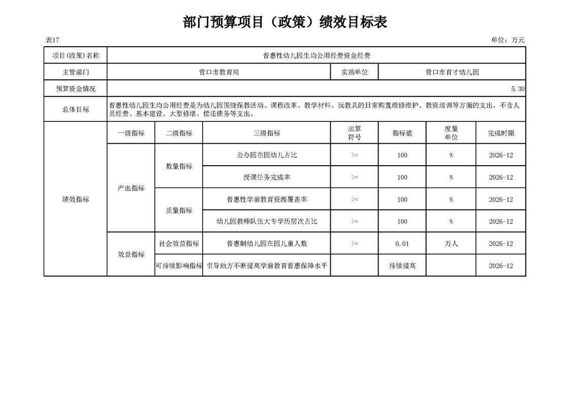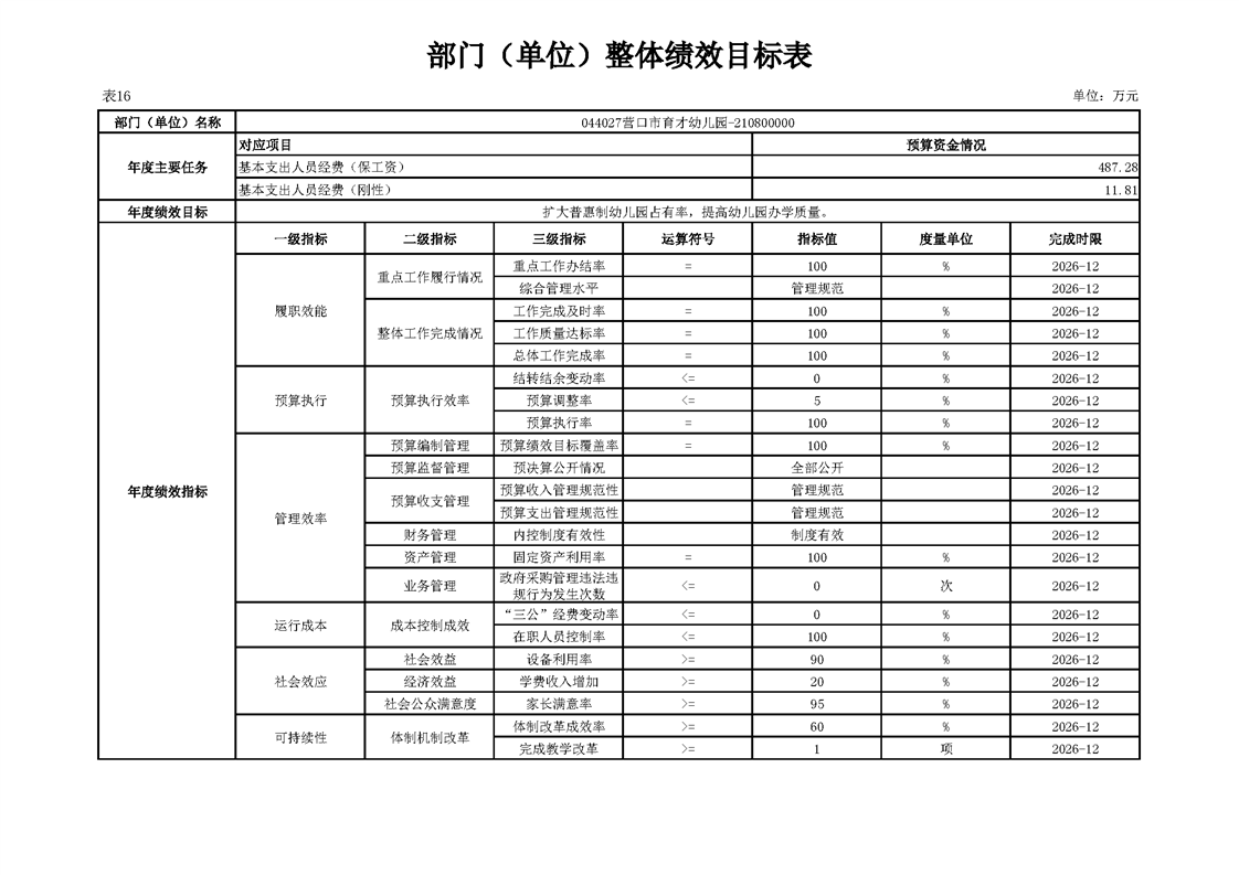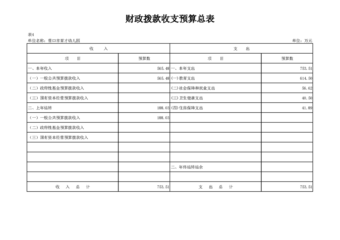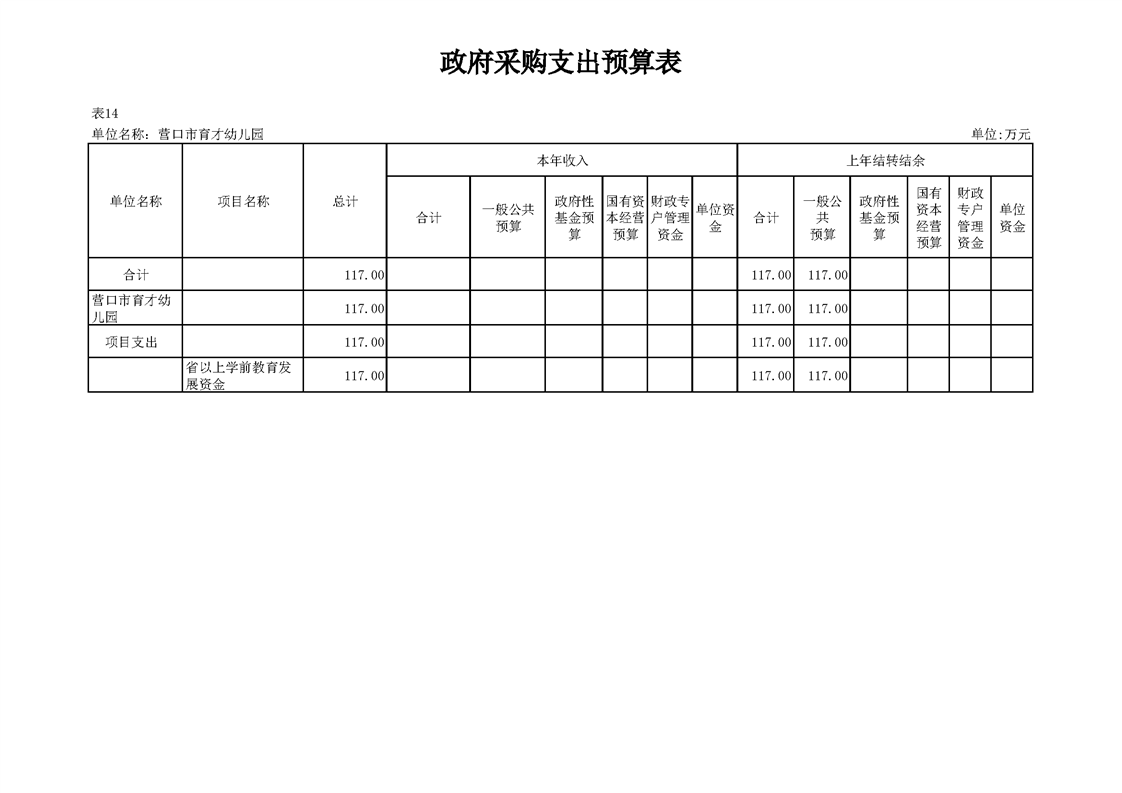 营口市育才幼儿园2026年度单位预算