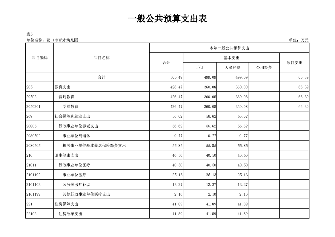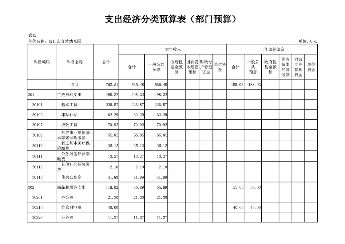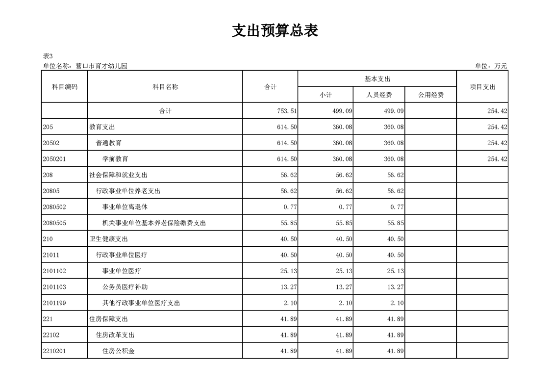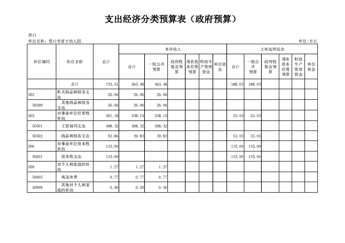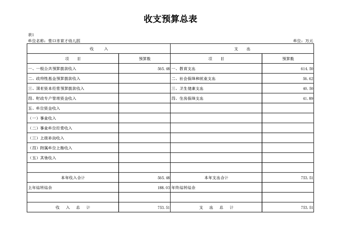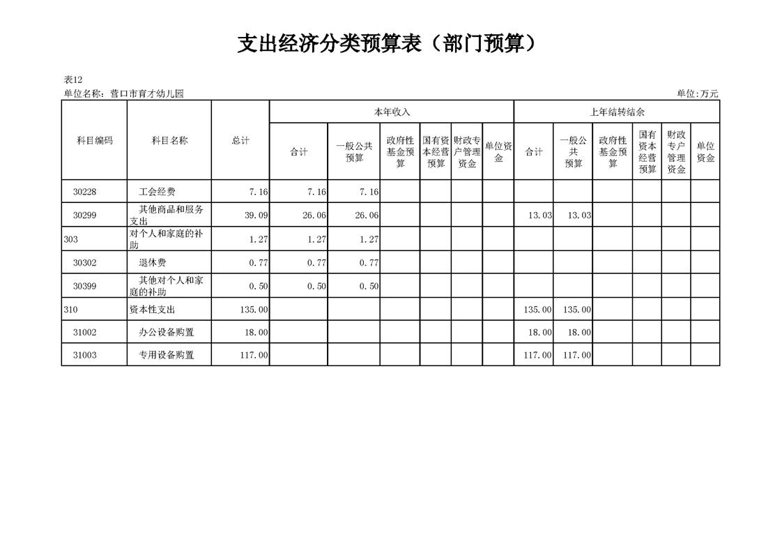 营口市育才幼儿园2026年度单位预算