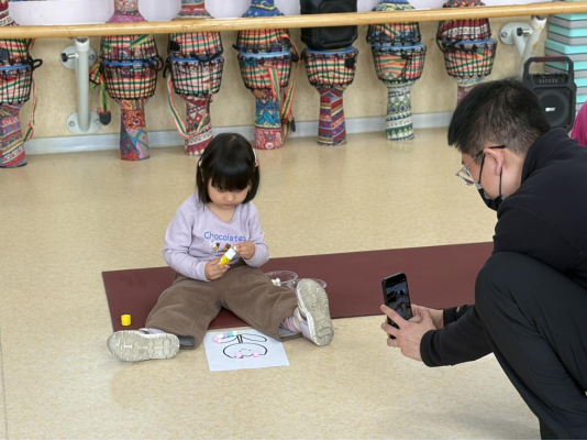 在《手指点点点》音乐伴奏下,家长带领幼儿共同做手指热身操,充分活动手指关节,提升手指灵活性与力量,为后续二指捏核心技能练习做好充分准备。